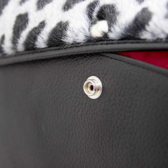 ですが、鞄の蓋部(フラップパーツ)と鞄本体(ベースパーツ)が分離出来て、お好みで着せ替えができちゃいます。鞄裏側の連結部はホックで固定されていて、パチパチっと外していただければ簡単に付け替え出来ます。