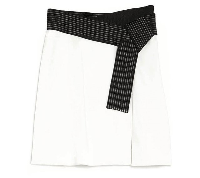 NYのラグジュアリーなファッションブランド、3.1 Phillip Lim(スリーワン フィリップリム)のユニークなコンセプトのミニスカート。きれいなシルエットにブラックのベルトがポイントですが、このベルトが「柔道」の帯にインスパイアされたデザインというユニークなコンセプト。そのまんま柔道感を出してないとこもいいですね。パッと見た感じ柔道の帯には見えないけど、「実は柔道の帯がモチーフなんだよね」的な佇まいは会話のネタにもなりそう。