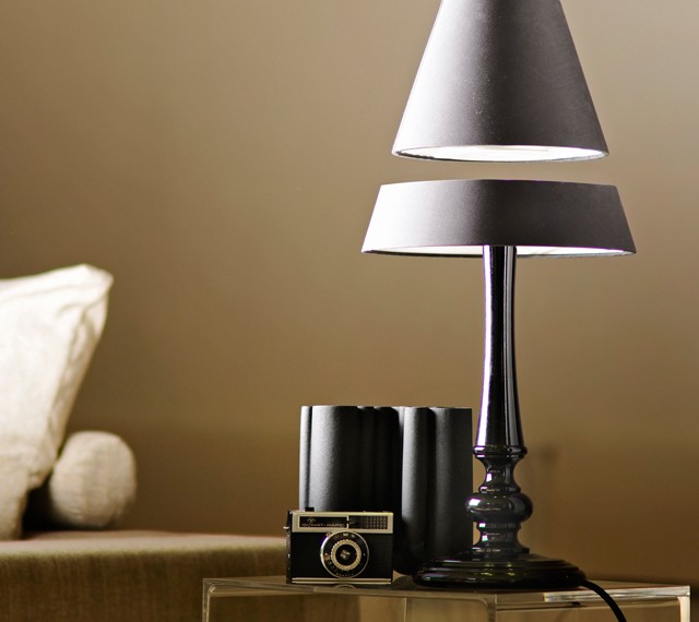 最初に見た時は「細いワイヤーで吊ってる」と思い、にわかに信じがたかったですが、どうやら本当にシェード部分が宙に浮くテーブルランプ。まずは下記の動画を見れば一目瞭然。