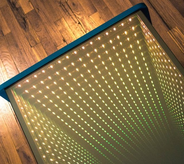 仕組み自体はお察しの通り、鏡の反射を利用して「無限に見える」ようになっている、ということ。たまにショップとかで、狭いけど壁に全面鏡を置いて奥行きがあるように見せているトコがあったりしますが、あれと同じような仕組みですね。個人的には、ビデオカメラをテレビに繋いでテレビを撮るとその画が無限ループする、あの感じを思い出しました。ちょっとアナログ感あるこういうアイデアも新鮮。