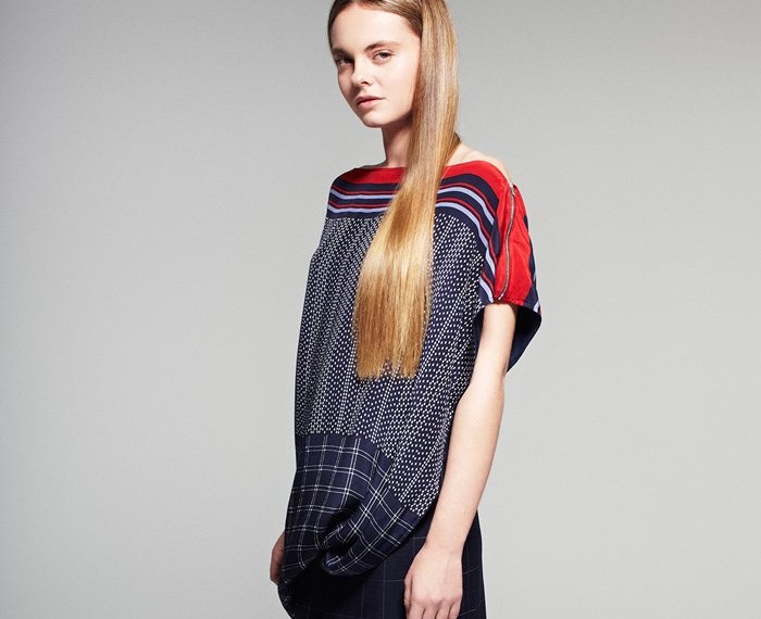 リバーシブルとジッパーを上手く使った仕様で、アウターにもインナーにもなる服。アウターとして使った時は「半纏」のようで、かなり和なテイストがありますが、インナーとして使った時はすごくかわいい感じに。まさに和洋折衷なデザイン。