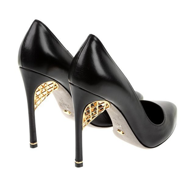 イタリアのシューズブランド「セルジオ ロッシ」のパンプス。ポイントはなんといってもヒールに付いてるゴールドケージ!何気にありそうで無いデザインですよね。これがあることで、ちょっと一癖のあるパンチの利いた印象。もちろん靴自体の美しいシルエットがあってこそ、ですね。ラムレザー製。価格は1,325ドル。