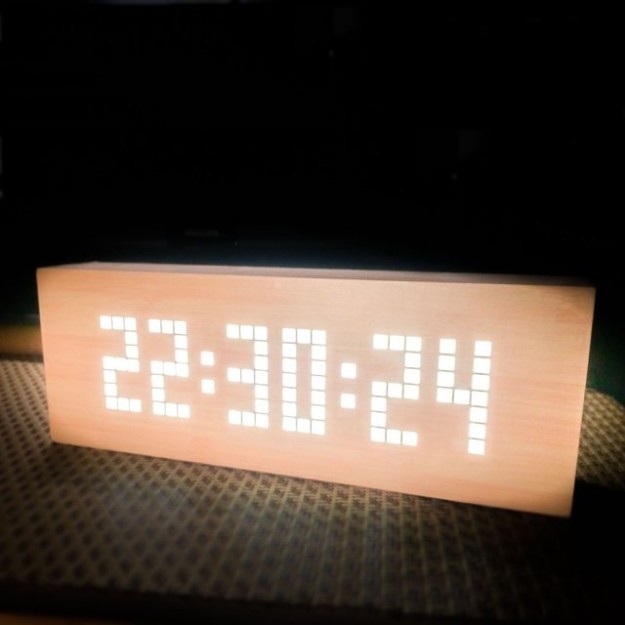 木製のLED時計「LED Message Clock by Bamboo & Wood」