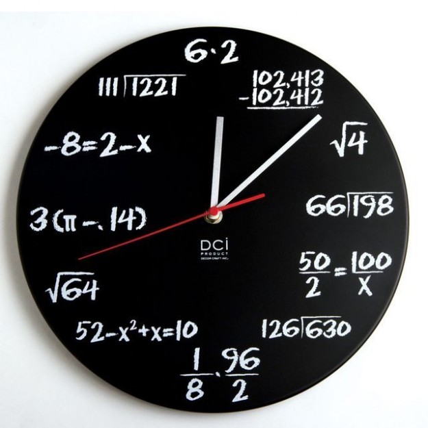 数学が苦手な方には見るだけでイヤになっちゃいそうな「計算」する壁掛け時計。見ての通り、文字盤の1から12までの表現を「計算式」