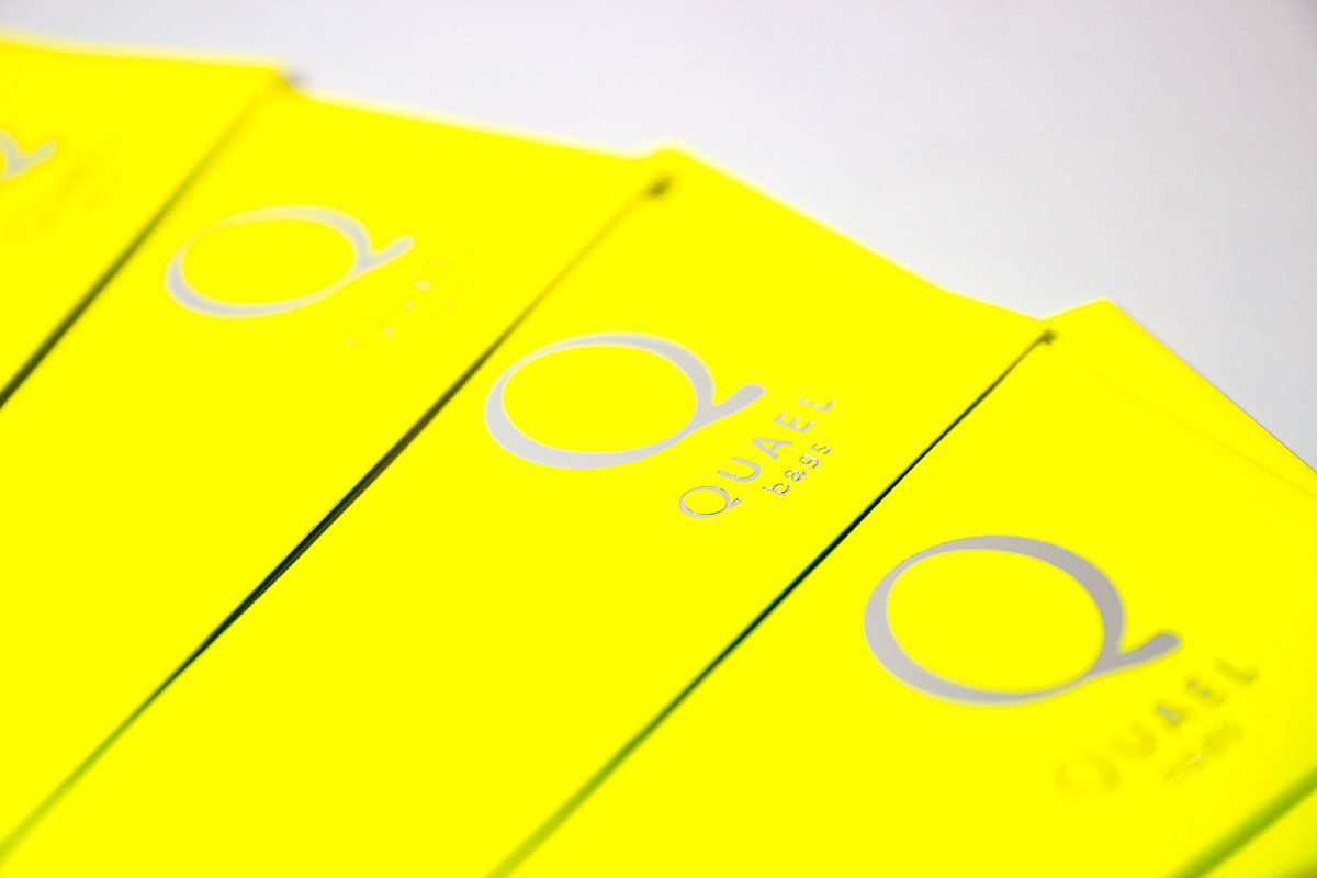 目が覚めるような蛍光イエローにシルバーの箔押しと、グラフィックデザイナーとしてはクライアントさんにちょっとプレゼンしにくい(笑)、派手派手な仕様にしました。